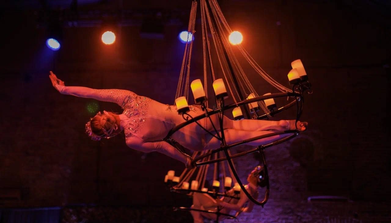 Вечер, где джаз встречает акробатику, а бархат превращается в энергию. Velvet Circus — это не просто шоу, это экстравагантный карнавал желаний: летающие акробаты на гигантских люстрах, бурлеск, степ, вокал, перья, блеск и магия тела.