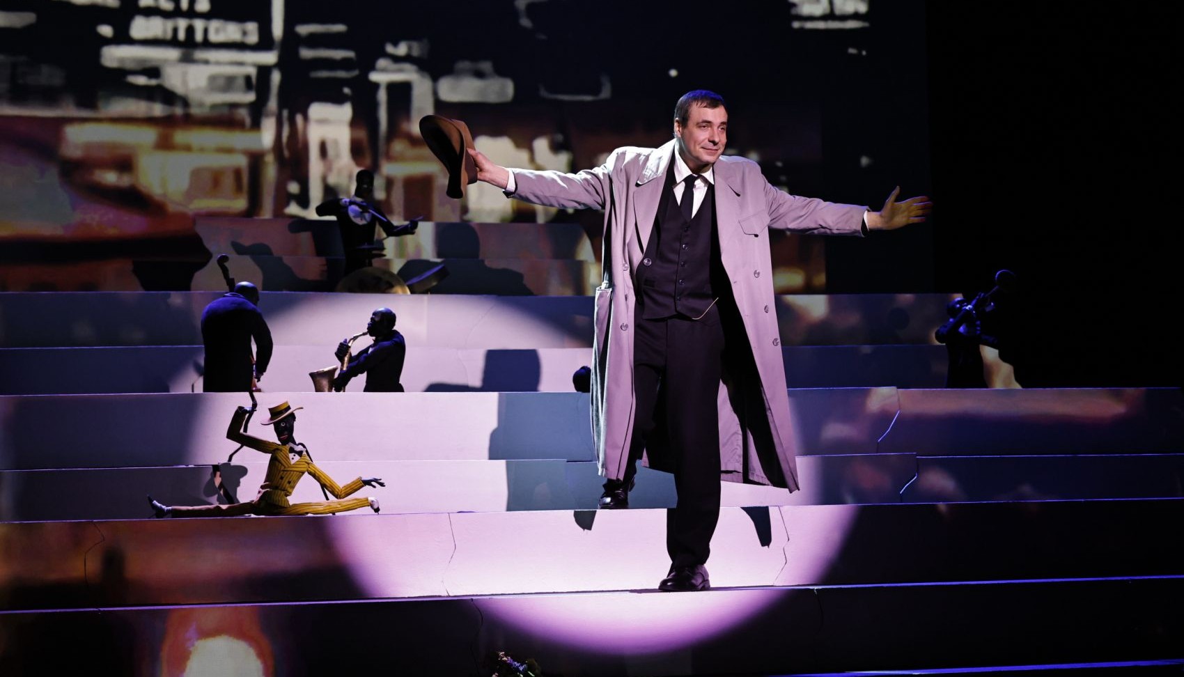 На фоне кадров исторической кинохроники и рисунков Сергея Образцова оживают в куклах легенды театра и кино: Любовь Орлова и Лидия Русланова, Чарли Чаплин и Леонид Утесов, Соломон Михоэлс и Федор Шаляпин, а также другие исторические знаменитости.