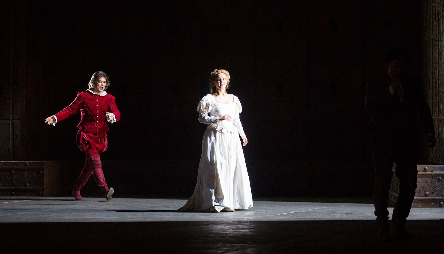 Нынешнюю постановку в Новой Опере — первую в России за 40 лет — осуществил известный французский режиссер, художник и сценограф Арно Бернар. Российским зрителям он известен постановками в Михайловском театре («Жидовка» Ф. Галеви, 2010; «Богема» Дж. Пуччини, 2011; спектакль был номинирован на Российскую национальную театральную премию «Золотая маска»). Музыкальный руководитель — приглашенный дирижер Новой Оперы Фабио Мастранджело.