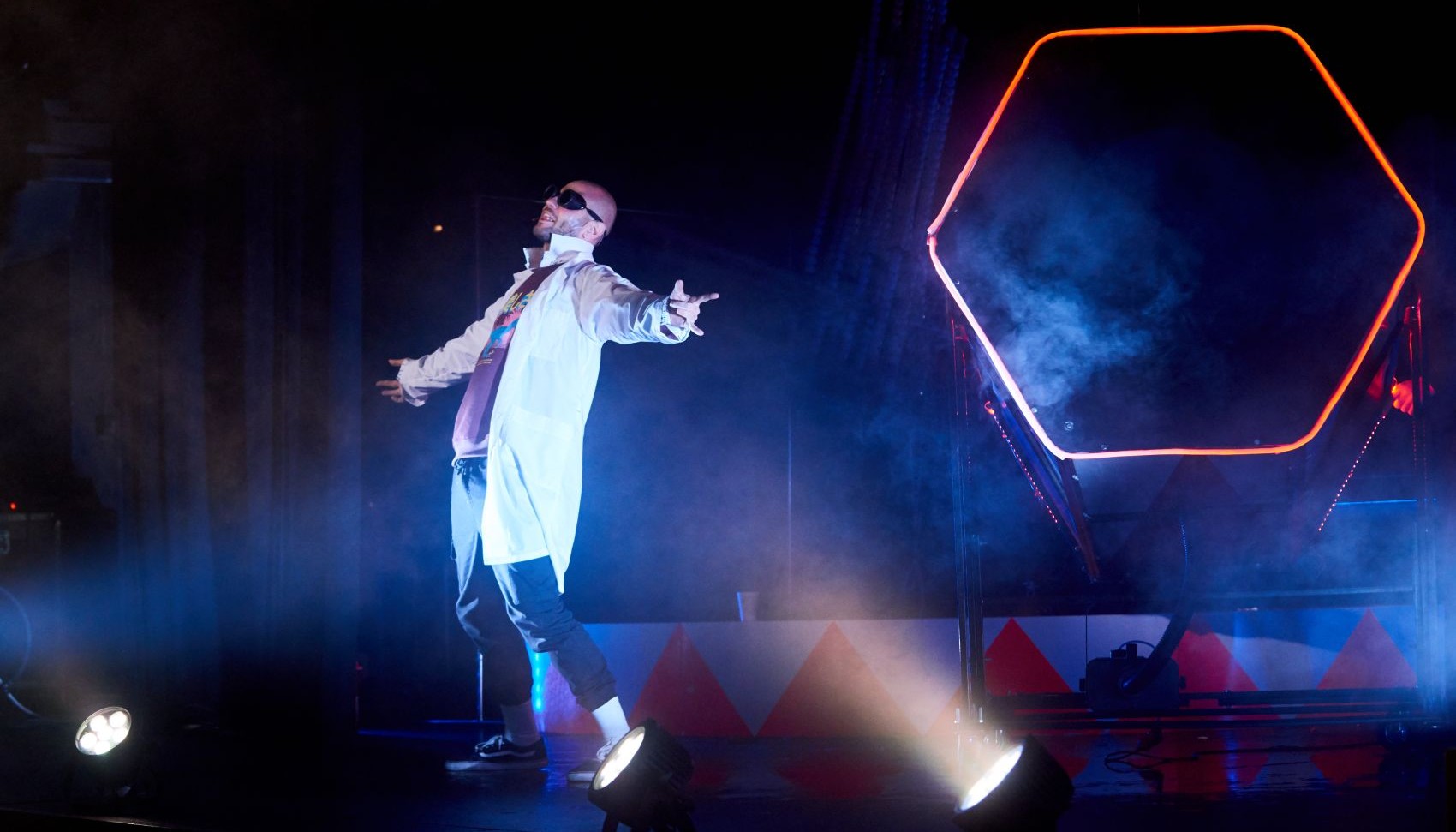 Где еще можно увидеть шаромет, выстреливающий до 100 шариков в минуту? Или настоящие катушки Теслы с разрядами молний длиной до трех метров? Азотный двигатель, аниматронные роботы, двухметровые пробирки для невероятных химических превращений — более 20 научных демонстраций подготовлены практикующими учеными из лучших вузов страны. Все 60 минут шоу сопровождаются уникальным видеорядом от видеохудожников и аниматоров мирового уровня.