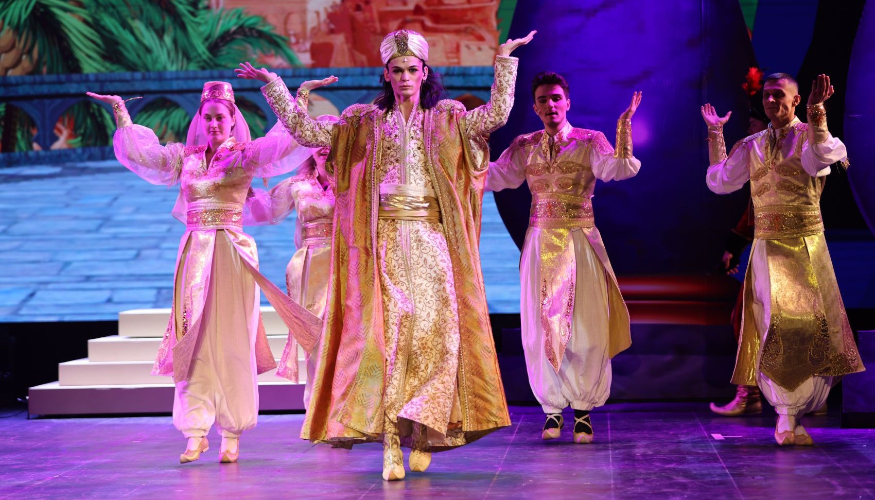 Креативная команда молодых постановщиков создали невероятные танцевальные номера, красочные костюмы, переносящие в далекие восточные страны, и яркую сценографию, погружающую в атмосферу любимой сказки.