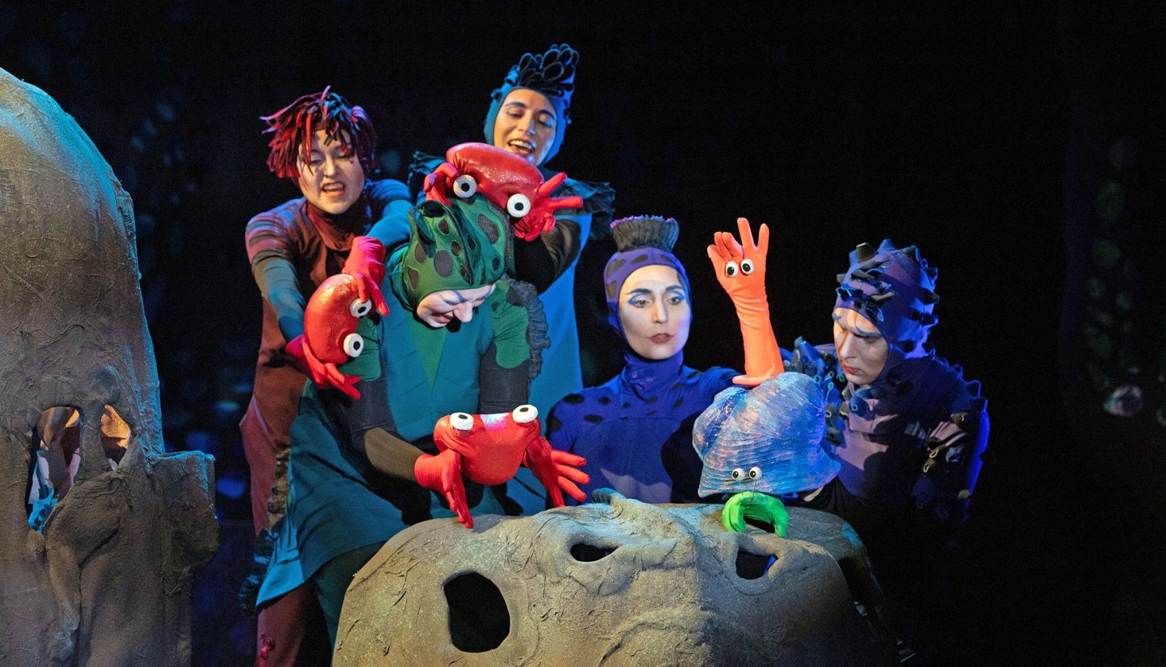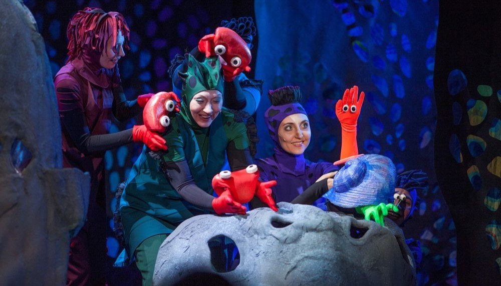 Но самое удивительное то, что почти всех персонажей в этой сказке «играют»… руки! Ладонь, пять пальцев, смешные глазки-пуговички — и вот перед нами уже ожил непоседливый и замечательно симпатичный Рак-Отшельник… А сколько ещё таких находок и открытий ждет маленьких зрителей во время спектакля…