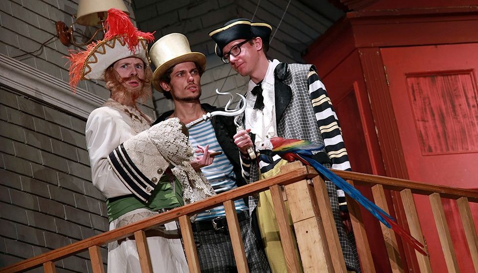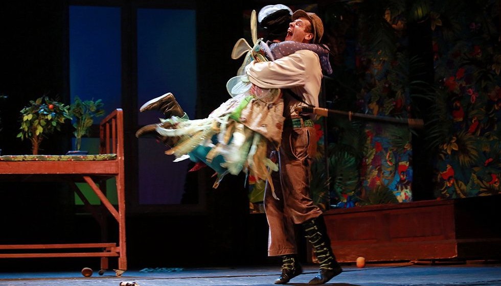 Персонажи спектакля играючи примеряют на себя разные роли — даже Питер Пэн не прочь немного побыть в шкуре своего злейшего врага Капитана Крюка.